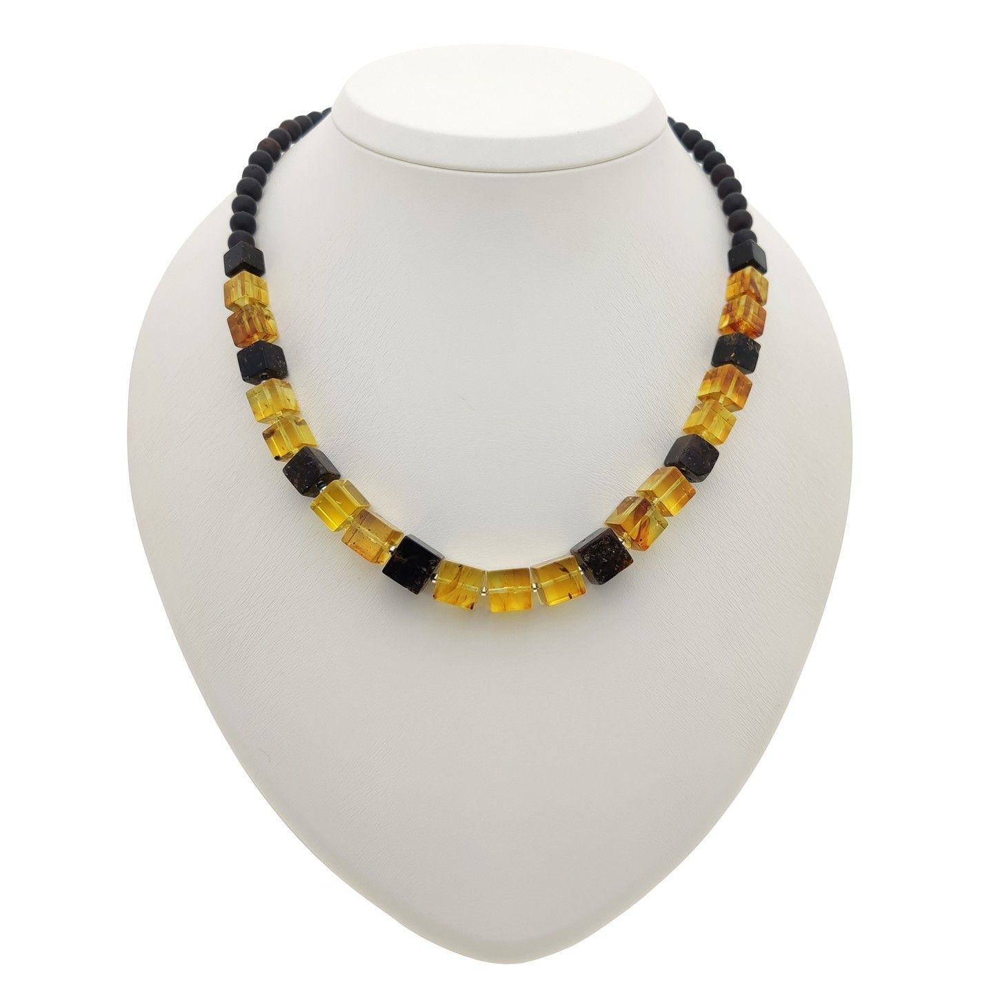 Шикарное полуколье из неполированного янтаря через разноцветный полированный  кубик