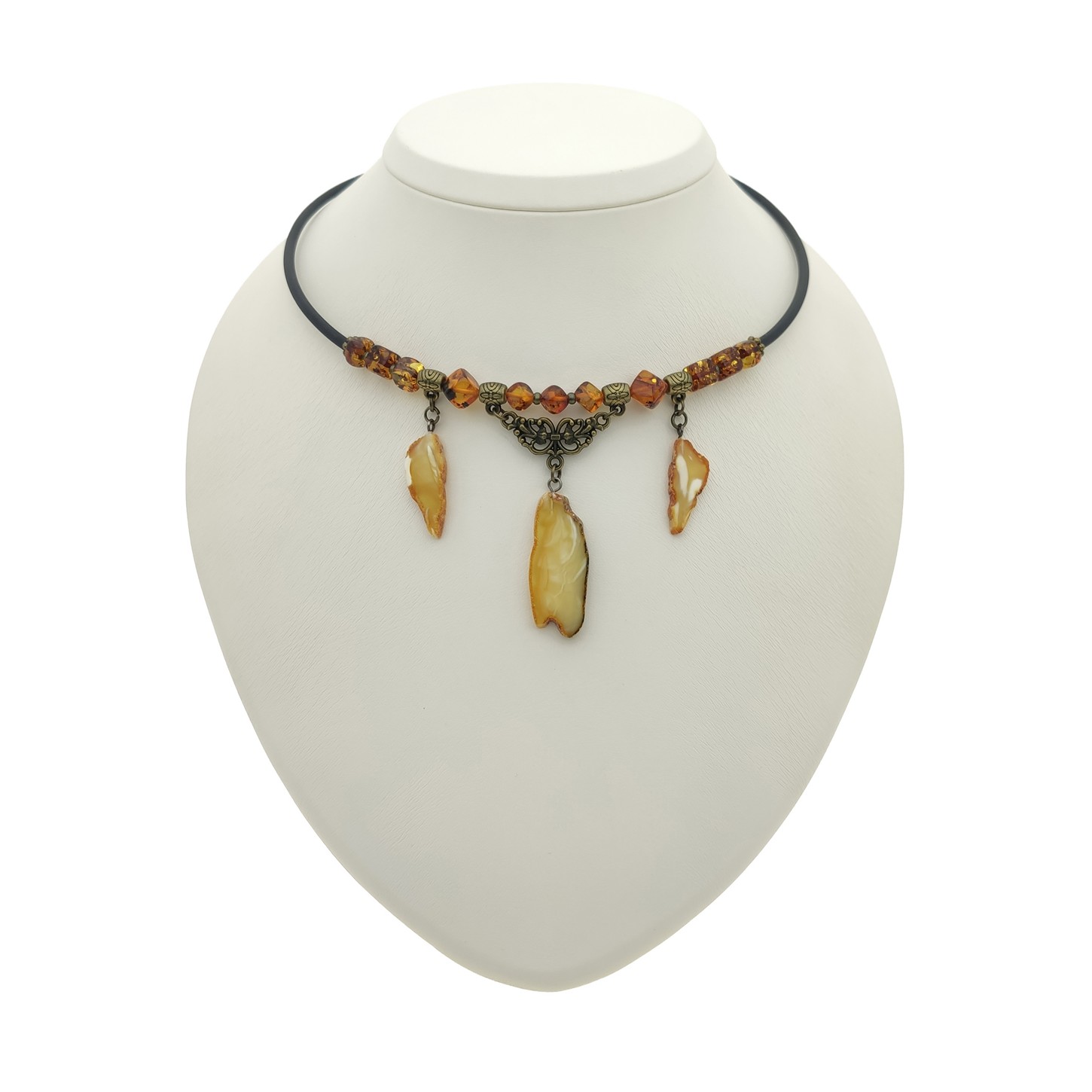 • Колье с янтарем на струне